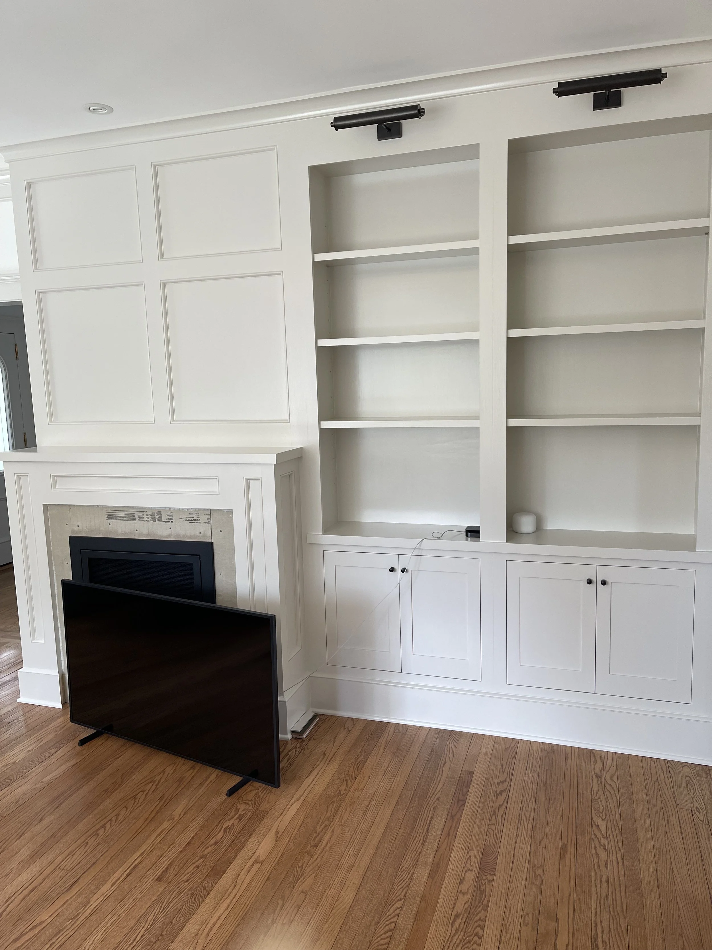 Modern/Greek Revival built in with fireplace surround