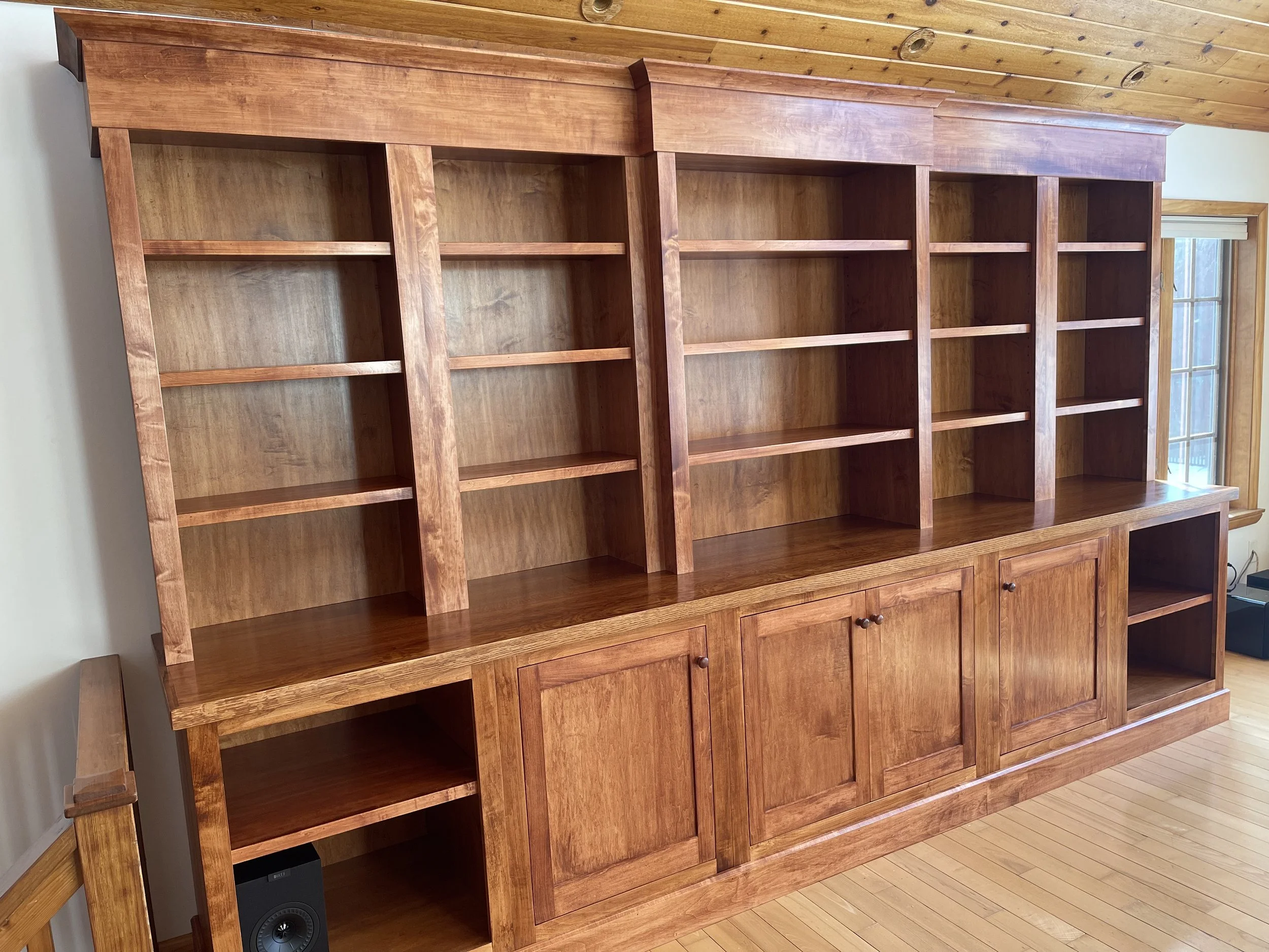 Maple bookshelves with top center section proud